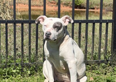 Valentine is 2 years old, she had a litter of puppies that we also have in our care. She is all about the love that you are willing to give. She loves to go in the playyards and just hang out. She does well when walking on a leash.